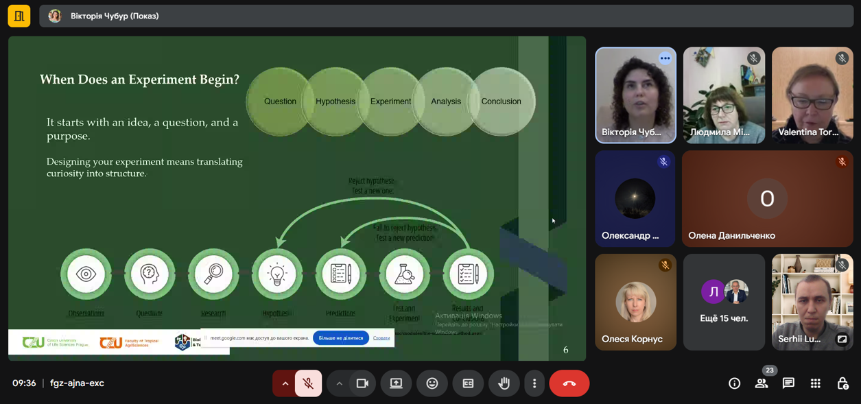 Held within the courses “Fundamentals of Scientific Research” and “Fundamentals of Production Technologies,” Dr Viktoriia Chubur delivered the lecture “From idea to experiment: developing research with a specific goal using the example of biogas research.” She presented the key stages of developing scientific research, from forming an idea and hypothesis to analysing results and interpreting findings. Particular attention was given to Experimental Design, including experiment planning, selection of appropriate research methods, error control, and statistical data analysis.