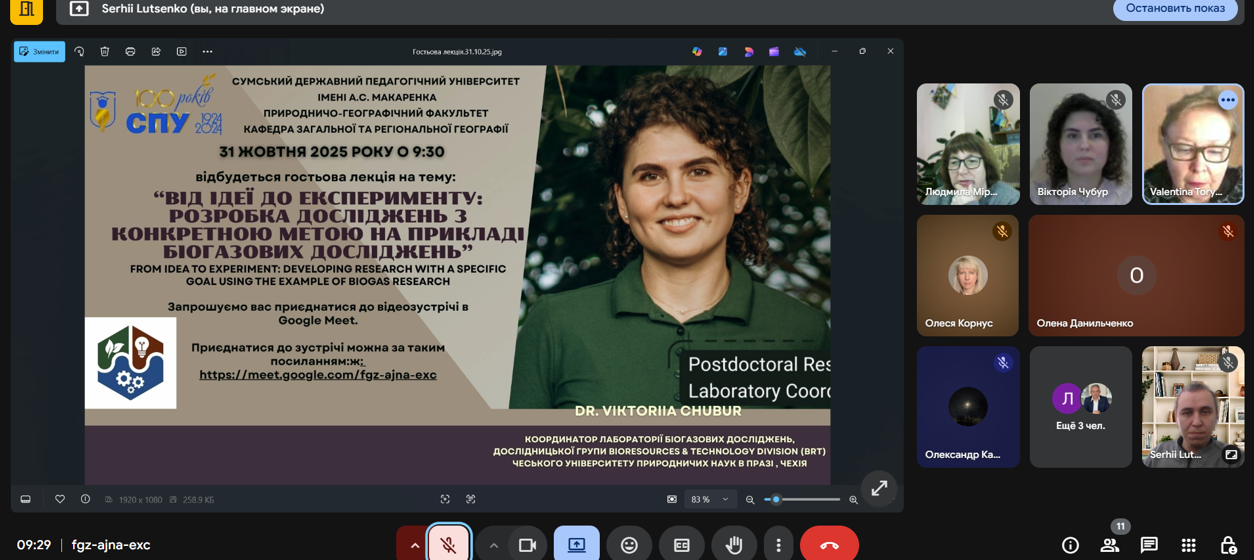 Another guest lecture was held for students of the Department of General and Regional Geography at Sumy State Pedagogical University named after A. S. Makarenko. The session was held within the courses “Fundamentals of Scientific Research” and “Fundamentals of Production Technologies,” taught by Dr. Serhii Lutsenko.