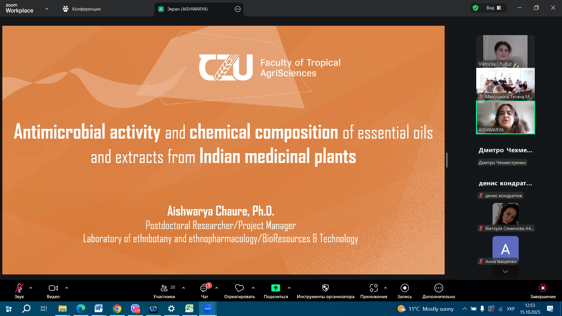 Aishwariya Chaure, PhD, BRT Project Manager, presented “Antimicrobial activity and chemical composition of essential oils and extracts of Indian medicinal plants.” Her lecture focused on the bactericidal properties and chemical composition of plant extracts and essential oils, demonstrating their potential applications in biotechnology and plant protection.