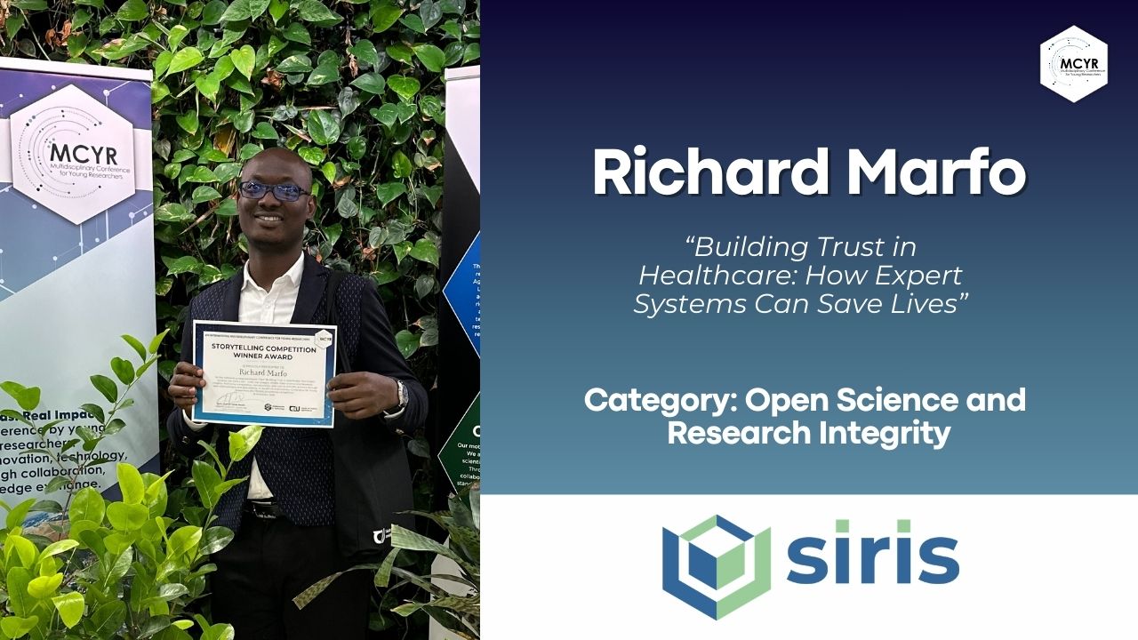 In the category OSIRIS: Open Science and Research Integrity, Richard Marfo from the Department of Information Engineering, Faculty of Economics and Management, CZU was recognised for his exceptional submission, “Building Trust in Healthcare: How Expert Systems Can Save Lives.” His story compellingly highlights how transparency, reproducibility, and responsible data use in healthcare technologies can enhance trust, improve decision-making, and ultimately save lives. The winning narrative brings the OSIRIS mission to life by illustrating why open science and research integrity are foundational to modern scientific practice.