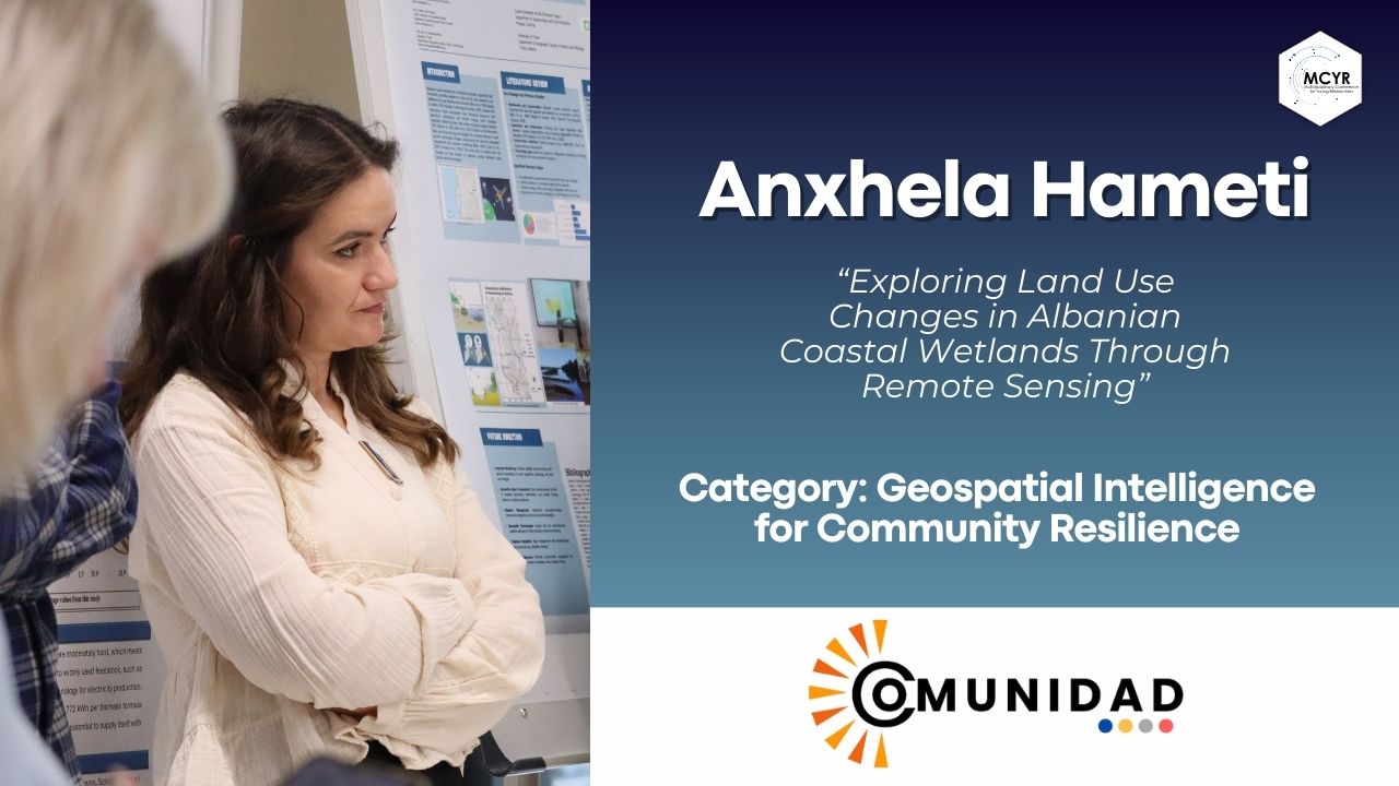 In the category COMUNIDAD: Geospatial Intelligence for Community Resilience, Anxhela Hameti from the Department of Agroecology and Crop Production, Faculty of Agrobiology, Food and Natural Resources, CZU was recognised for her outstanding submission, “Exploring Land Use Changes in Albanian Coastal Wetlands Through Remote Sensing.” Her story masterfully demonstrates how satellite data, remote sensing, and spatial analysis can reveal environmental transformations and guide community-level decision-making. The winning narrative brings the COMUNIDAD mission to life by illustrating the power of geospatial intelligence to support resilience in landscapes facing mounting climate and ecological pressures.