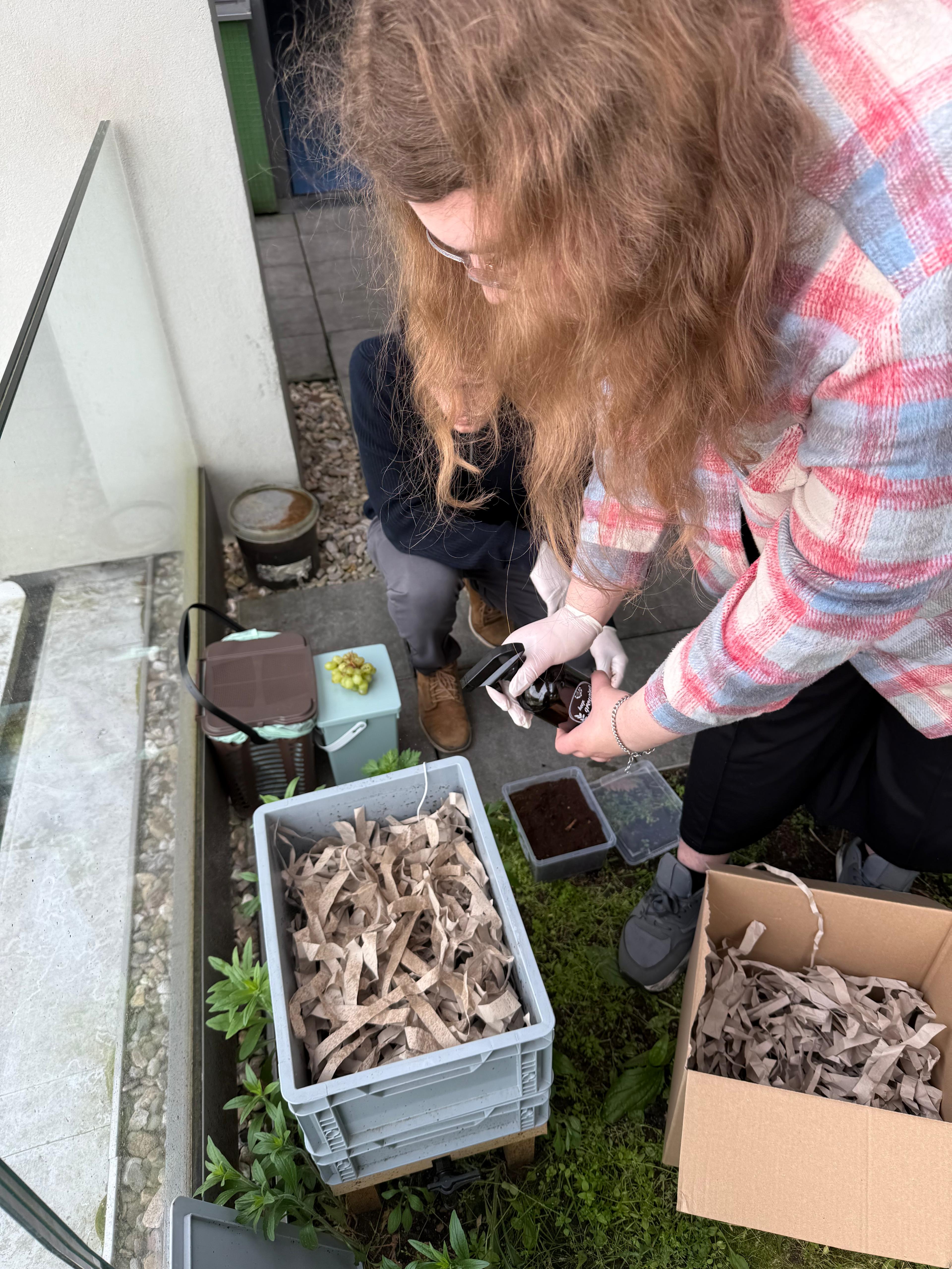 Under the guidance of Dr. Viktoriia Chubur, I was trained in monitoring and analyzing anaerobic digestion processes for biogas production. Together, we restarted the vermicomposter after the winter by adding paper and organic waste, and continued to monitor its operation. The result of vermicomposting is not only vermicompost itself but also water-soluble nutrients, which can be extracted as vermiwash - an excellent, nutrient-rich organic fertilizer and soil conditioner. Dr. Chubur taught me how to determine the concentrations of phosphorus (P), nitrites (NO2), and nitrates (NO3) in the vermiwash using a spectrophotometer, and how to measure pH using a pH meter.